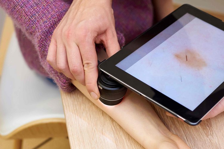 Im Rahmen der Hautkrebsvorsorge untersuchen wir standardmäßig mittels Dermatoskop als Handgerät Ihre gesamte Haut systematisch und beurteilen Muttermale sowie andere pigmentierte oder nicht pigmentierte Hautveränderungen. Auffällige Befunde werden dokumentiert und – falls erforderlich – zeitnah weiter abgeklärt oder behandelt. Ziel ist die frühzeitige Erkennung von Hautkrebs und seinen Vorstufen sowie eine individuelle Empfehlung zu sinnvollen Kontrollintervallen.